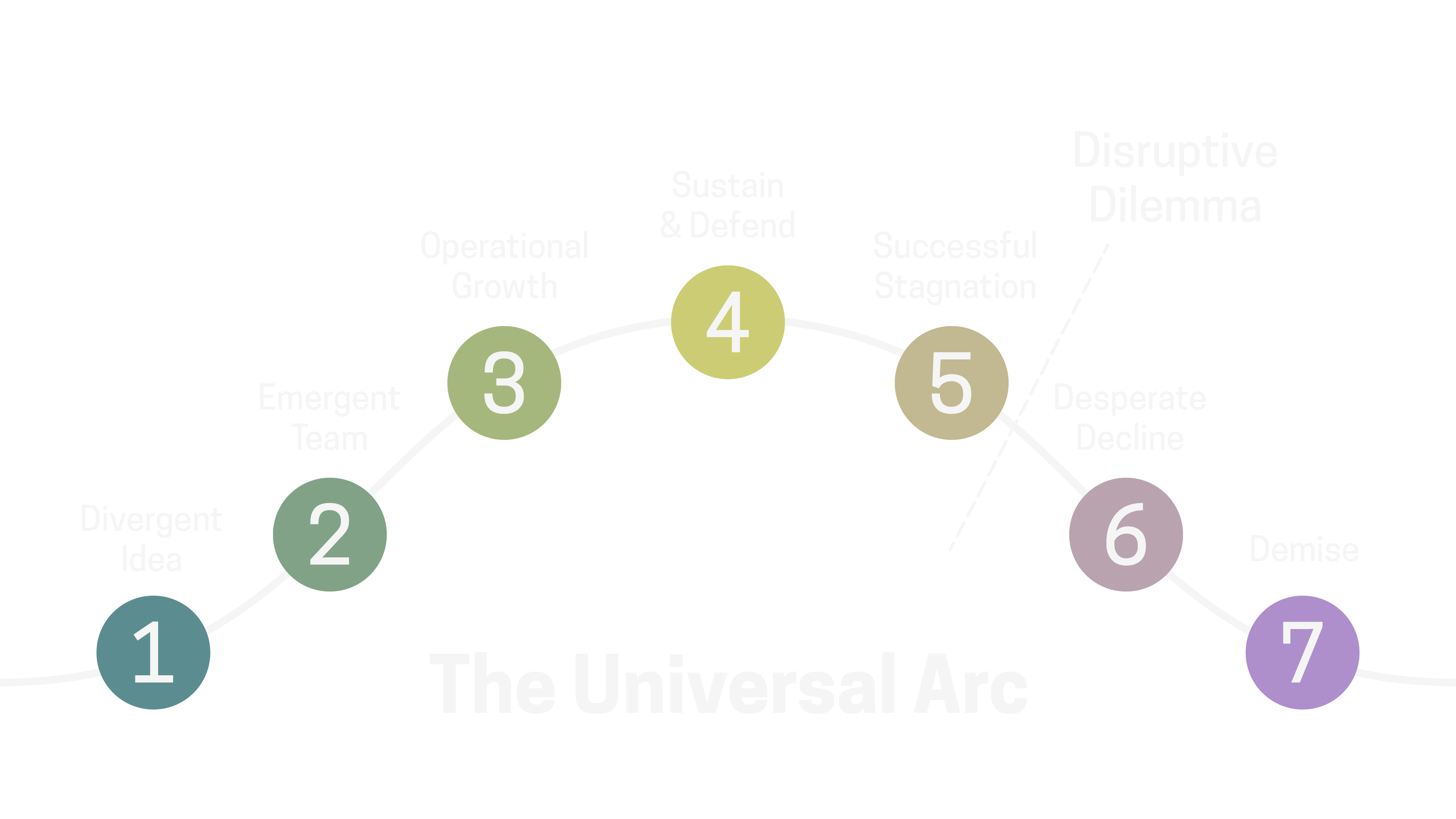But at some point a disruption that happens, often technological, that can impact society, and when the world shifts around organizations, they are no longer relevant and fall the fastest. If they have not created a culture that fosters experimentation and divergent thinking, the organization will enter the stage of